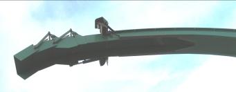 Hakkurin torvessa on alaspäin kääntyvä lippa, jolla pystytään muuttamaan hakesuihkun suuntaa alaspäin. |